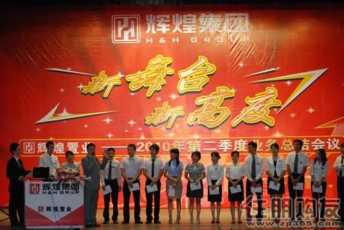 2010年7月12日晚,广西辉煌置业咨询服务有限公司第二季度业务总结会议在南鹰宾馆大会堂隆重召开。公司董事长、总经理黄俊华先生、常务副总经理文伟源先生、副总经理刘喜先生出席会议,各部门经理及全体员工共500多人参加了会议。本次会议的主持人是公司**在全体员工中通过自荐、推选出来的来自阳光100分行的置业顾问蔡熹。