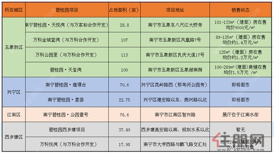 碧桂园在南宁已有案名的项目罗列